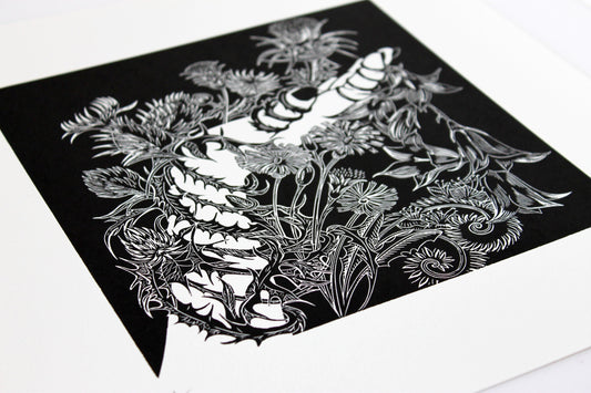 Deer and Hawthorn limited edition linoprint