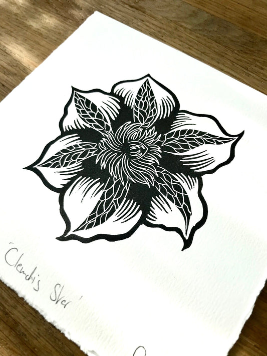Clematis Star limited edition linoprint