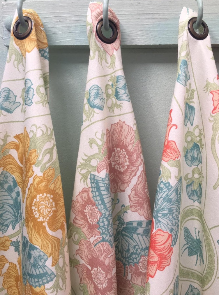 The final prints of 'King Peryton' -featuring the mythical Peryton and king of the weeds the dandelion, 'Aesop's Fables'- featuring the heron, fox and hare with wisteria vines, and 'Nasency'-with anemones, butterflies and bees were sent to Cocoon Home to be scanned.