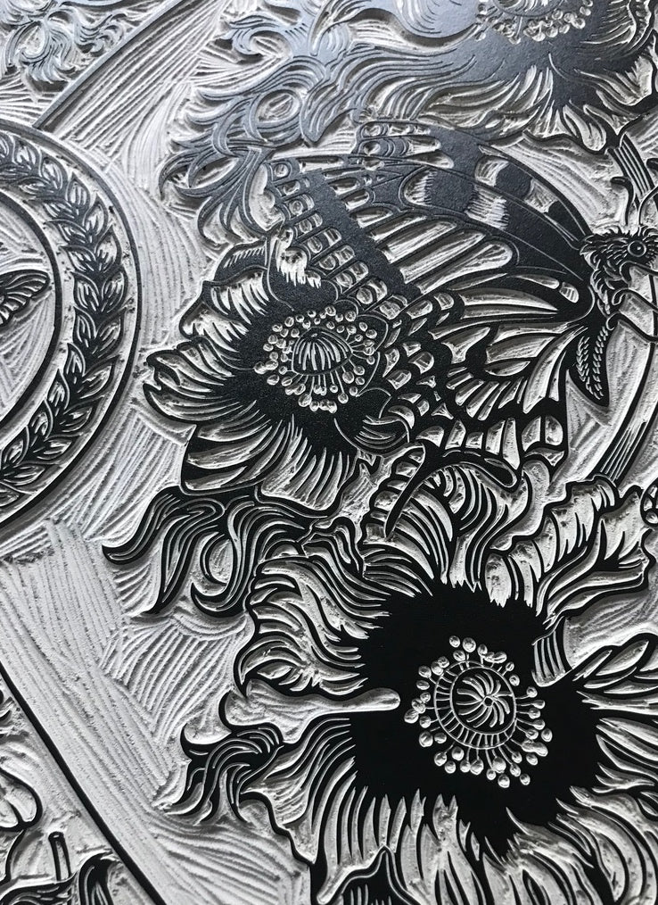 The company wanted to work with artists that specifically use the technique of linocut and woodcut which was part of the collection's aesthetic.