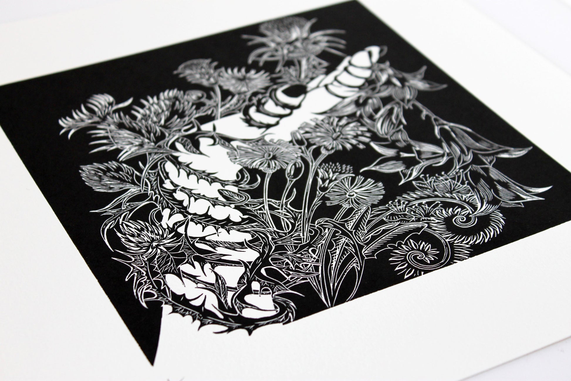 An original hand-drawn and carved linocut print, part of an edition of 15. Made for the exhibition 'Fifty Bees: The Interconnectedness of all Things', where fifty artists were asked to respond to a given bee. My bee was Bombus Distinguenus - The Great Yellow Bumblebee.
